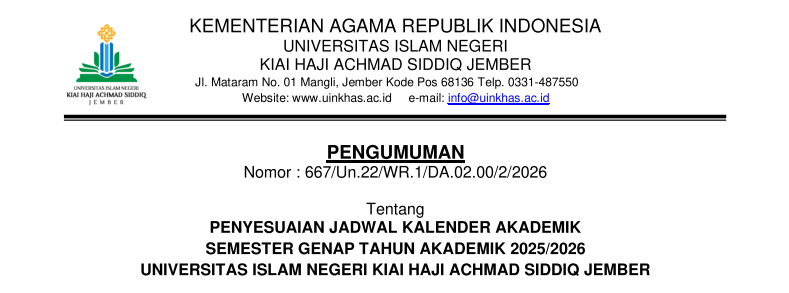 PENGUMUMAN PENYESUAIAN JADWAL KALENDER AKADEMIK TAHUN AKADEMIK 2025-2026