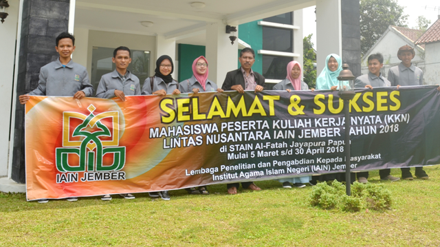 IAIN Jember- Sedikitnya delapan mahasiswa dari berbagai fakultas Institut Agama Islam Negeri (IAIN) Jember diterjunkan ke Jayapura Papua untuk melaksanakan kegiatan Kuliah Kerja Nyata (KKN) Lintas Nusantara. KKN ini merupakan salah satu diantara wujud pengabdian masyarakat ditingkat mahasiswa selain KKN regular yang dilaksanakan di Kabupaten Jember dan beberapa kabupaten sekitarnya.