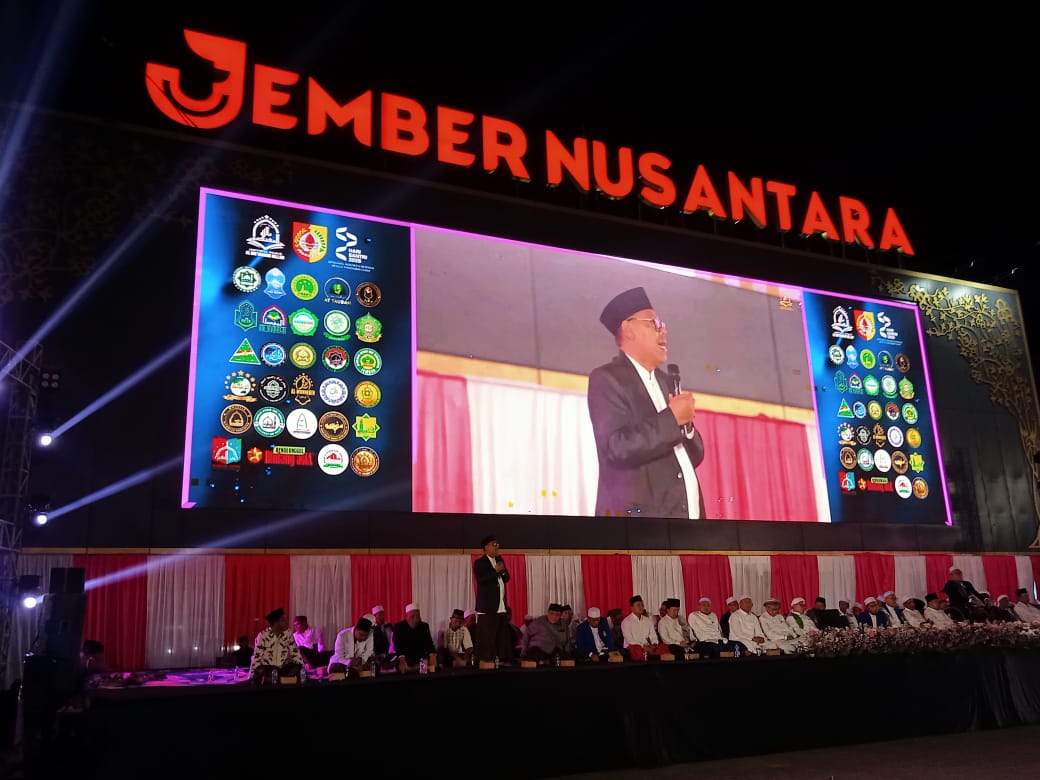 Dalam tausiyahnya yang diselingi canda khas pesantren, Prof. Hepni membuka dengan salam hangat kepada para habaib, masyaikh, dan hadirin. Ia bahkan sempat mencairkan suasana dengan sapaan ringan kepada Bupati Jember, Gus Fawaid, seraya mengundang tawa jamaah. Namun di balik suasana cair itu, pesan yang beliau sampaikan sungguh mendalam: nilai-nilai keikhlasan, kesederhanaan, kemandirian, ukhuwah, dan kebebasan berpikir—lima asas utama pesantren—harus kembali dihidupkan dalam kehidupan umat hari ini.