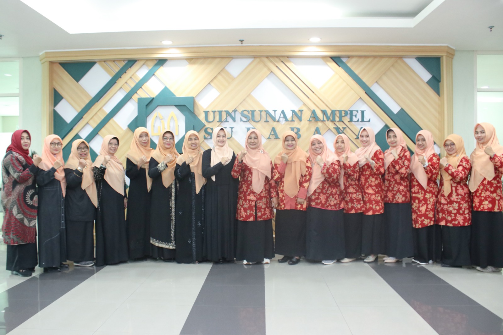 Ketua DWP UIN KHAS Jember, Ny. Luluk Shultoniyah Hepni bersama rombongannya tiba di UINSA sekitar pukul 13.30 WIB dan disambut oleh Ketua DWP UINSA, Ny. Erna Mawati bersama pengurus dan anggotanya.