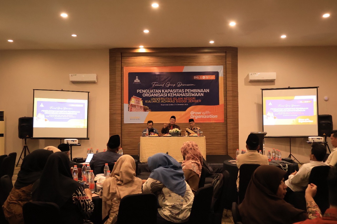 Humas - UIN Kiai Haji Achmad Siddiq (KHAS) Jember menggelar Focus Group Discussion (FGD) Penguatan Kapasitas Pembinaan Organisasi Kemahasiswaan (Ormawa) sebagai upaya merawat sekaligus merapikan tata kelola “rumah aktivisme” mahasiswa. Kegiatan ini menjadi ruang refle...
