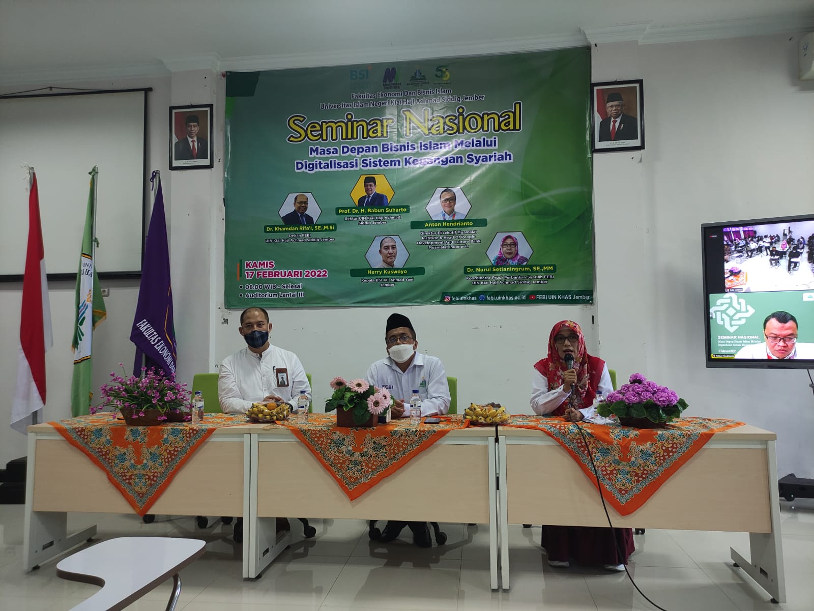 Humas - Jember, 17 Februari 2022. Setelah minggu lalu mengadakan Seminar Nasional dengan mengangkat topik tentang Zakat. Kali ini Fakultas Ekonomi dan Bisnis Islam (FEBI) UIN Kiai Haji Achmad Siddiq Jember kembali menyelenggarakan Seminar Nasional secara hybrid dengan tema “Masa De...