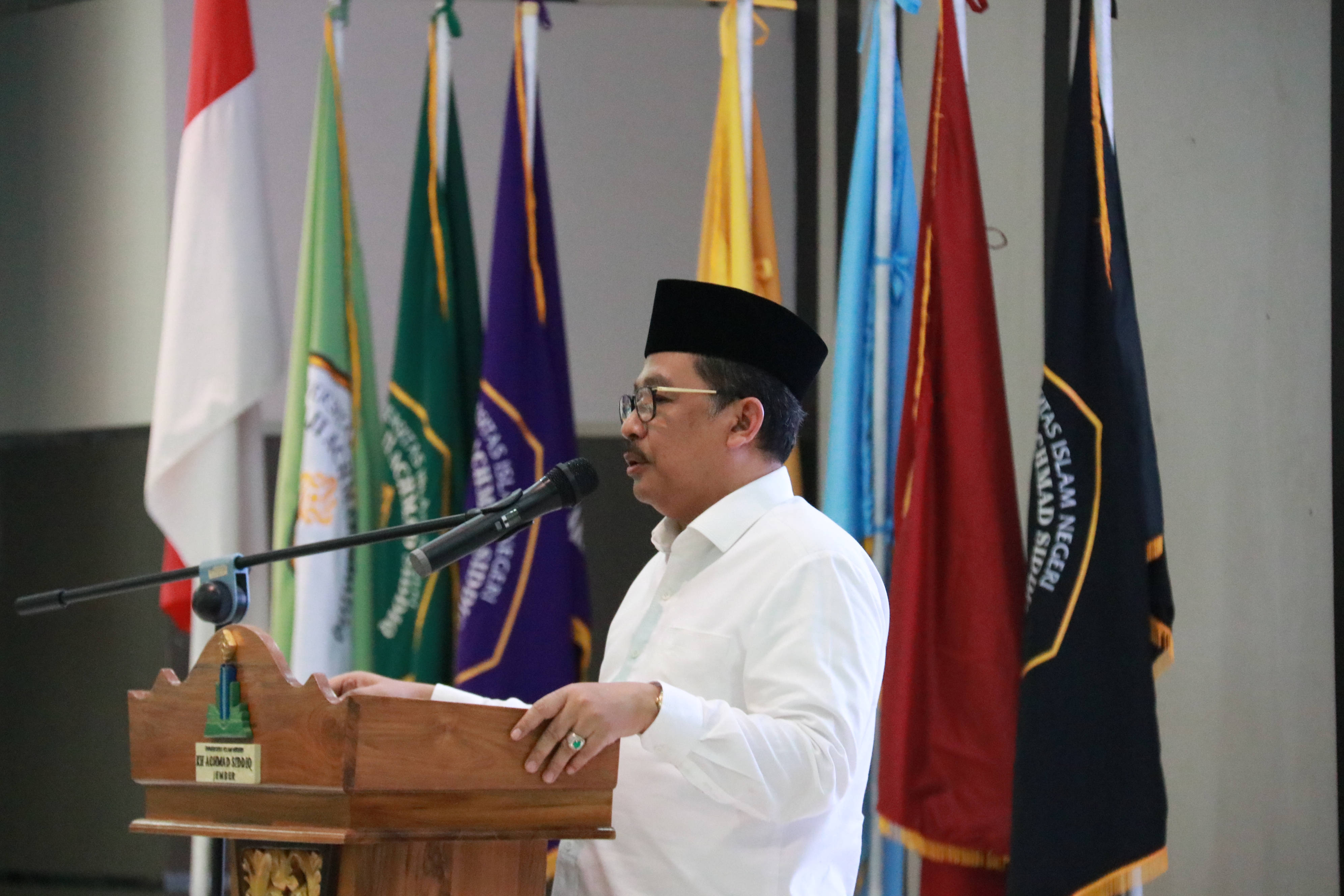 Humas – Wakil Menteri Agama RI Dr. H. Zainut Tauhid Sa’adi, M. Si menyampaikan materi dalam pembinaan Aparatur Sipil Negara (ASN) kepada para sivitas akademika Universitas Islam Negeri Kiai Haji Achmad Siddiq (UIN KHAS) Jember, Sabtu (5/2).
