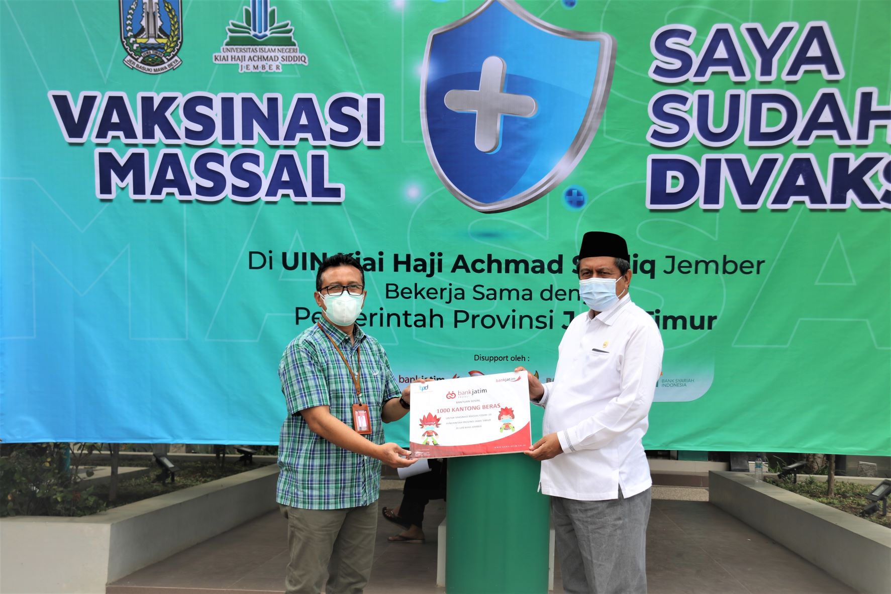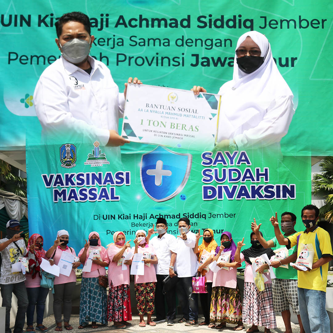 HUMAS- Pelaksanaan vaksinasi massal di Kampus Universitas Islam Negeri Kiai Haji Achmad Siddiq (UIN KHAS) Jember terus berlanjut. Yang unik dari pelaksanaan vaksin ini, peserta yang telah divaksin mendapatkan satu kantong beras seberat 2,5 Kg.