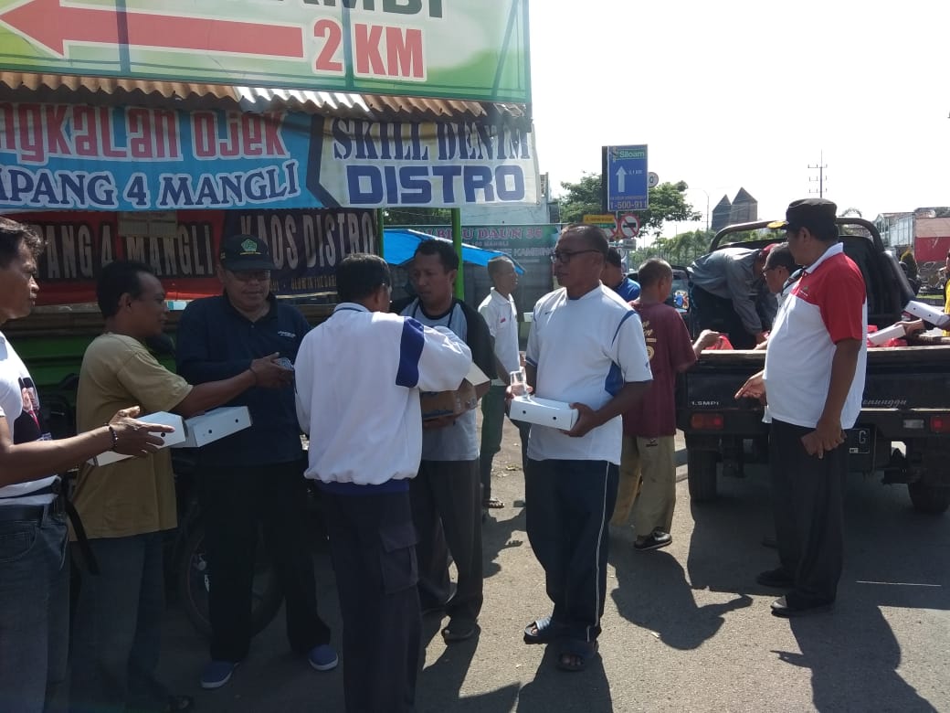 Aksi kemanusiaan diwujudkan ke dalam bentuk bagi- bagi nasi kotak kepada ojek, tukang becak...