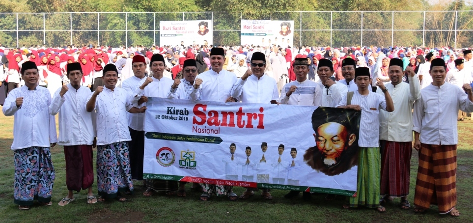 Upacara peringatan Hari Santri Nasional yang diselenggarakan di Stadion utama Institut Agama Islam Negeri (IAIN) Jember, Selasa (22/10), cukup istimewa. Sebab, Kapolres Jember AKBP Alfian Nurrizal menjadi inspektur upacara dan Komandan Kodim 0824 Jember, Letkol Inf. La Ode Muhammad Nurdin, juga m...