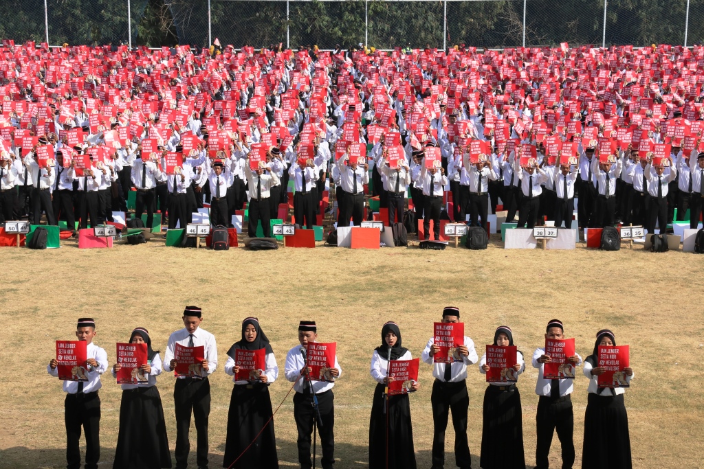 Ada pemandangan berbeda saat upacara pembukaan Pengenalan Budaya Akademik dan Kemahasiswaan (PBAK) bagi mahasiswa baru Institut Agama Islam Negeri (IAIN) Jember Tahun 2019. Saat upacara pembukaan tersebut, sebanyak 4117 mahasiswa baru mendeklarasikan kesetiaan terhadap Negara Kesatuan Republik In...