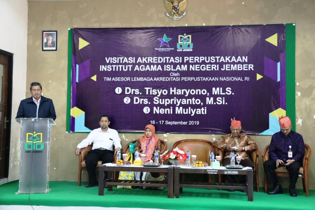Tim Asesor Lembaga Akreditasi Perpustakaan Nasional (Perpusnal) Republik Indonesia, Senin (16/9), melakukan visitasi ke Perpustakaan Institut Agama Islam Negeri (IAIN) Jember, Jawa Timur. Tim yang terdiri dari Drs Tisyo Haryono MLS, Drs Supriyanto M.Si, dan Neni Mulyati tersebut, tiba di Perpusta...