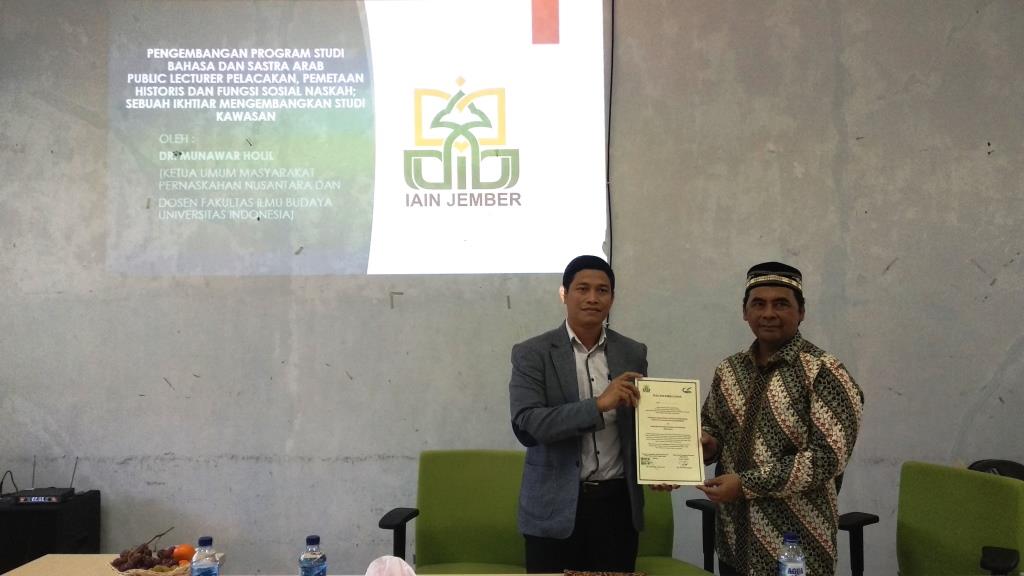 Fakultas Ushuluddin Adab dan Humaniora (FUAH) Institut Agama Islam Negeri (IAIN) Jember, menjalin kerjasama dengan Masyarakat Pernaskahan Nusantara (Manassa). Kerjasama itu akan difokuskan terhadap pengembangan akademik dan Sumber Daya Manusia.