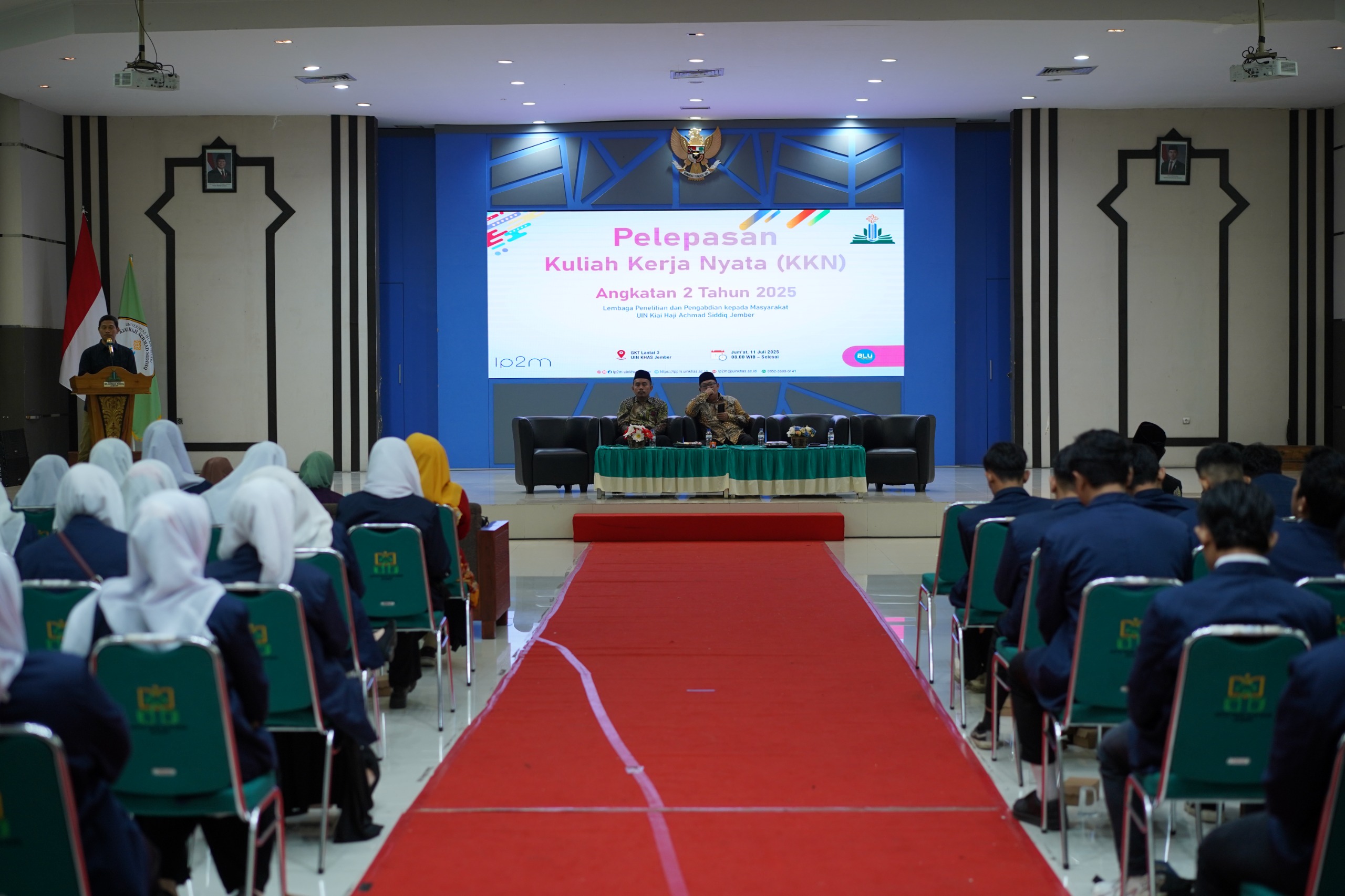 Humas - Universitas Islam Negeri Kiai Haji Achmad Siddiq Jember gelar acara Pelepasan Kuliah Kerja Nyata (KKN) Periode 1 2025 dengan melepaskan 1.805 peserta yang disebarkan ke seluruh pelosok wilayah Tapal Kuda meliputi Bondowoso, Situbondo, Lumajang dan Banyuwangi, pada Jum'...