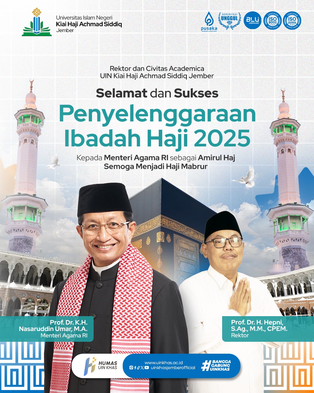 Humas - Rektor Universitas Islam Negeri Kiai Haji Achmad Siddiq Jember, Prof. Dr. H. Hepni, S.Ag., M.M, menyampaikan apresiasi atas suksesnya penyelenggaraan ibadah haji tahun 1446 H/2025 M yang dinilai lebih tertib, nyaman, dan penuh peningkatan dari tahun-tahun sebelumnya. ...