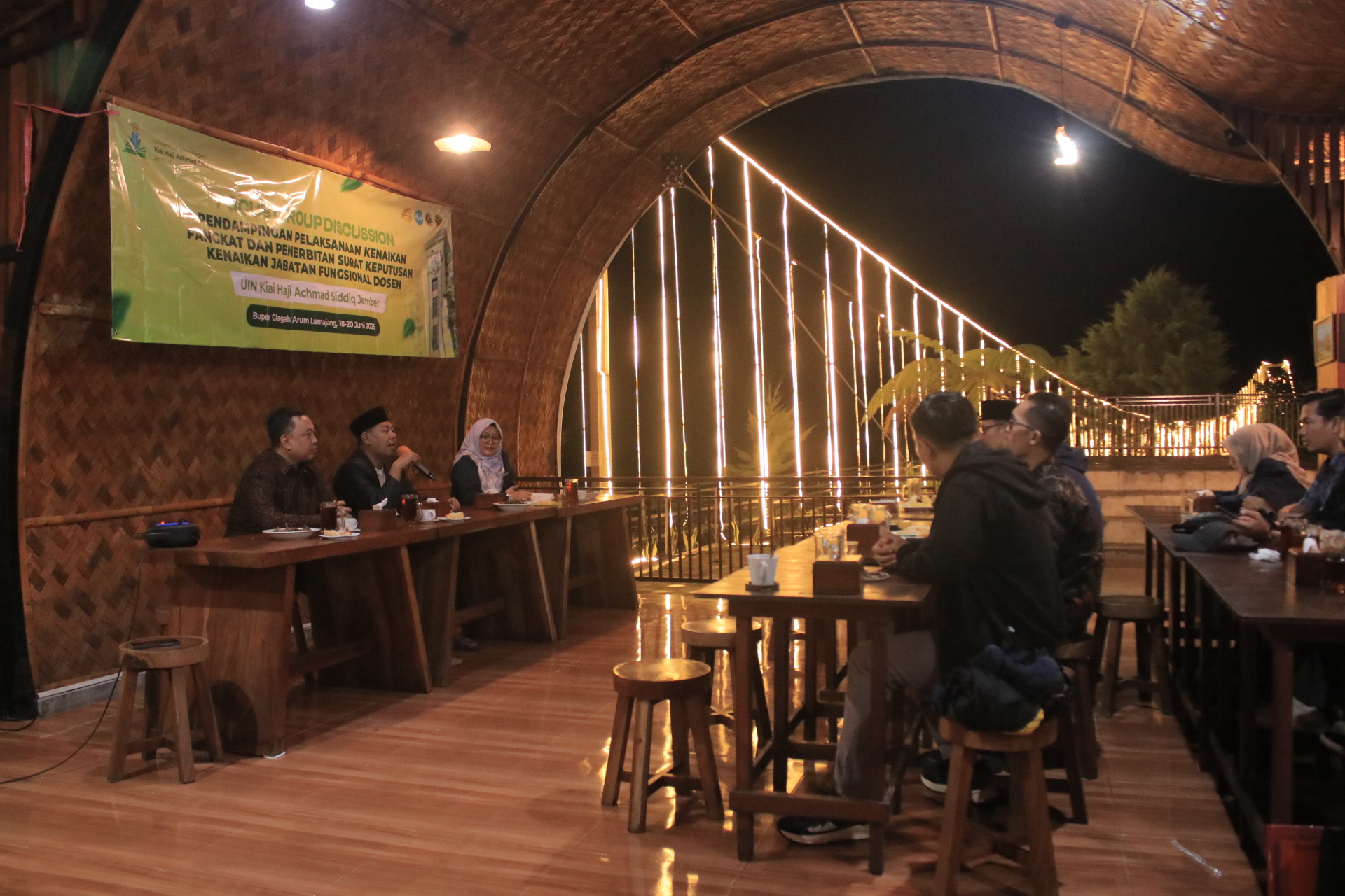 Humas - Universitas Islam Negeri Kiai Haji Achmad Siddiq (UIN KHAS) Jember menggelar Focus Group Discussion (FGD) bertema “Pendampingan Pelaksanaan Kenaikan Pangkat dan Penerbitan SK Jabatan Fungsional Dosen” di Bumi Perkemahan Glagah Arum, Senduro, Lumajang, pada 18–20 Juni 202...