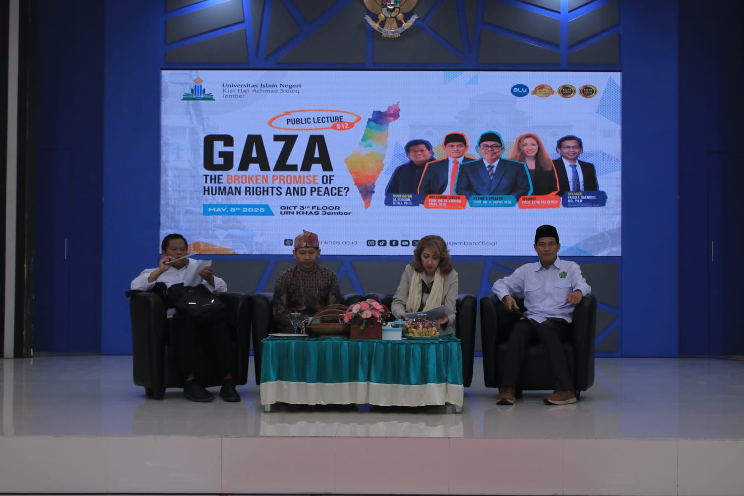 Humas - Soroti konflik yang tak kunjung usai di Gaza, Universitas Islam Negeri Kiai Haji Achmad Siddiq (UIN KHAS) Jember menggelar Public Lecture ke-12 bertemakan "Gaza: The Broken Promise of Human Rights and Peace?" pada Senin, 5 Mei 2025.