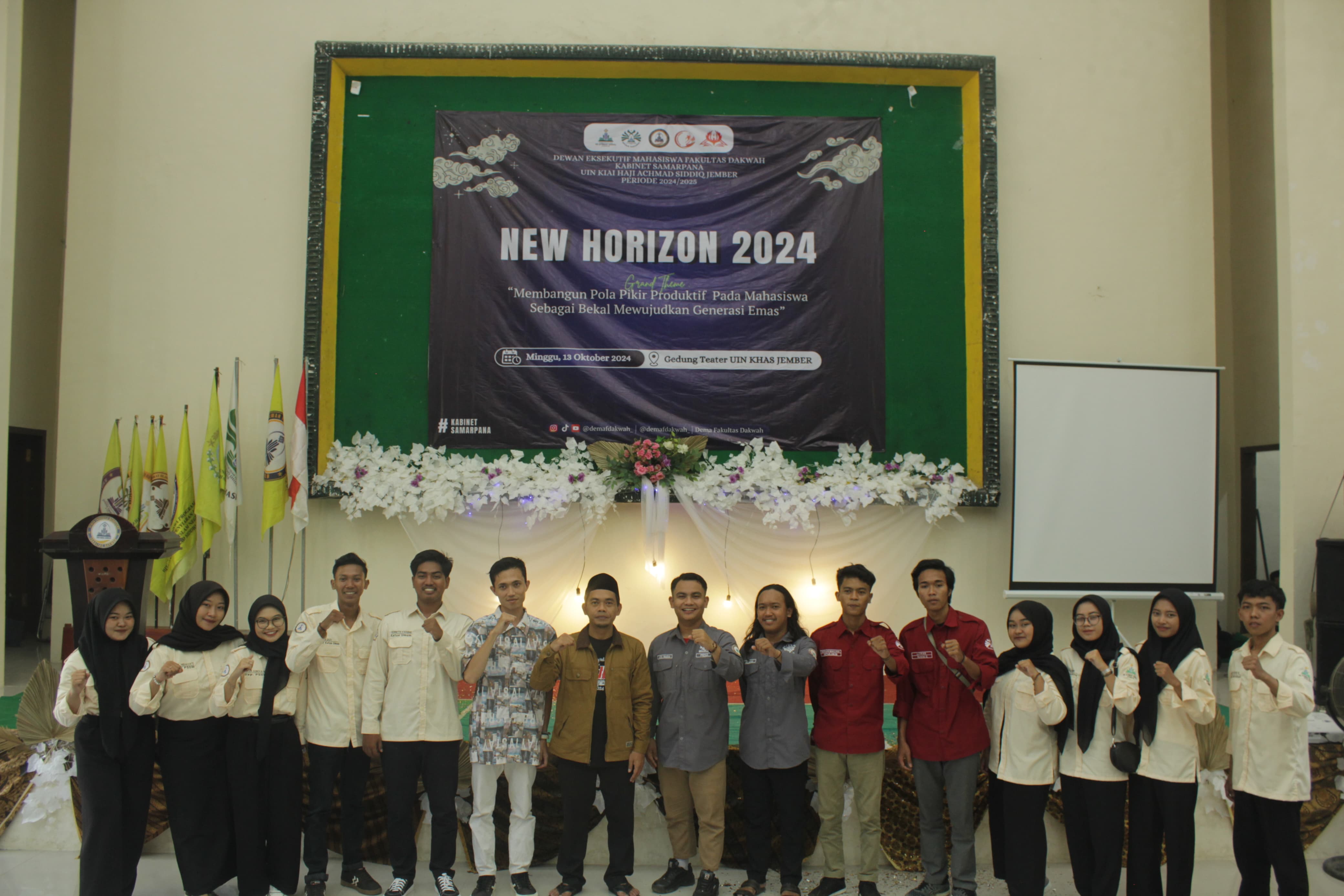 Humas - Dewan Mahasiswa (DEMA) Fakultas Dakwah UIN KHAS Jember sukses menggelar Program Orientasi Jurusan (Pojur) New Horizon 2024 bagi Mahasiswa Baru (Maba) pada Minggu, 13 Oktober 2024. Kegiatan yang bertemakan “Membangun Pola Pikir Produktif pada Mahasiswa Baru sebagai Bekal Mewujudkan Generasi Emas” ini berlangsung di Gedung Teater UIN KHAS Jember.