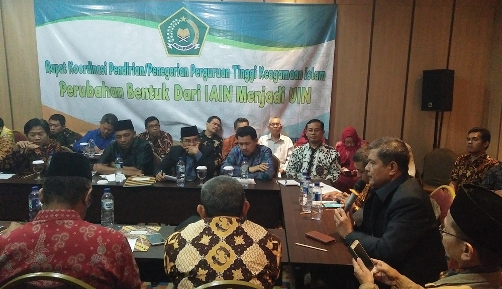 Penegasan itu disampaikan Rektor IAIN Jember Prof. Dr. H.Babun Suharto, MM saat menghadiri rapat Koordinasi Penegerian PTKI yang berubah bentuk dari IAIN menjadi UIN di Bogor. Sejak hari Senin (13/04), tim IAIN Jember melakukan presentasi perubahan bentuk IAIN Jember menuju UIN Jember.