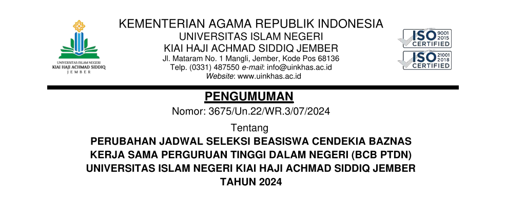 Berikut Pengumuman tentang Perubahan Jadwal Seleksi Beasiswa BAZNAS Tahun 2024:
