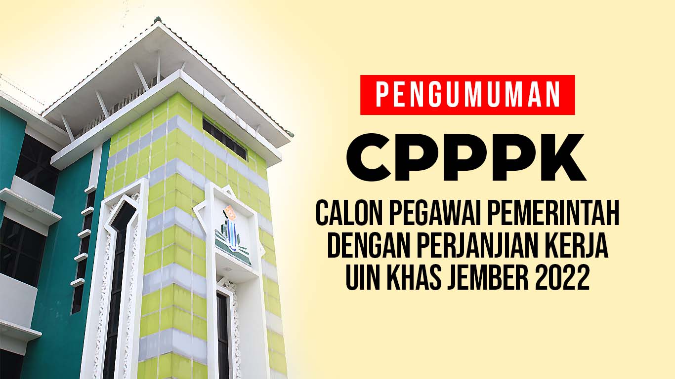 Berikut kami sampaikan Pengumuman tentang Pelaksanaan Seleksi Calon Pegawai Pemerintah Dengan Perjanjian Kerja (CPPPK) Kementerian Agama RI Tahun Anggaran 2022 maka dengan ini kami umumkan alokasi formasi penerimaan CPPPK UIN KHAS Jember Tahun Anggaran 2022.