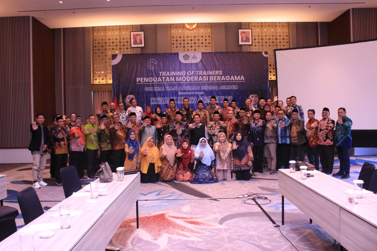 Humas - Training of Trainer (TOT) Penguatan Moderasi Beragama yang diselenggarakan oleh Universitas Islam Negeri Kiai Haji Achmad Siddiq (UIN KHAS) Jember, usai pada Sabtu, 13 Juli 2024, setelah terpantau Enam hari berlangsung, di Kokoon Hotel Banyuwangi.