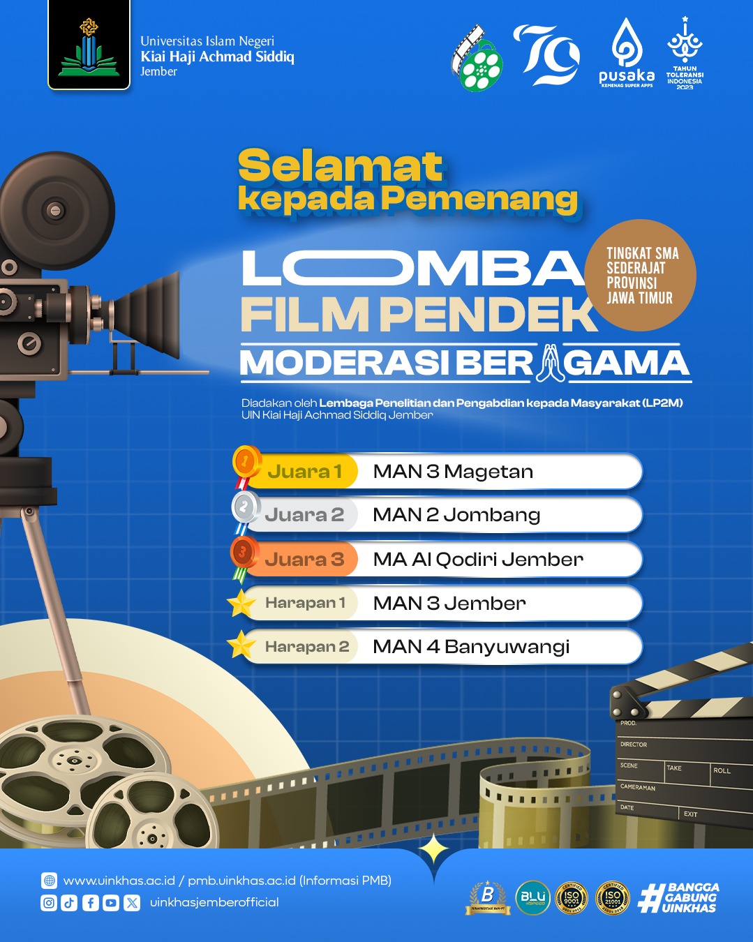 Humas - Baru-baru ini, Lembaga Penelitian dan Pengabdian Masyarakat (LP2M) Universitas Islam Negeri Kiai Haji Achmad Siddiq (UIN KHAS) Jember mengadakan Lomba Film Pendek.