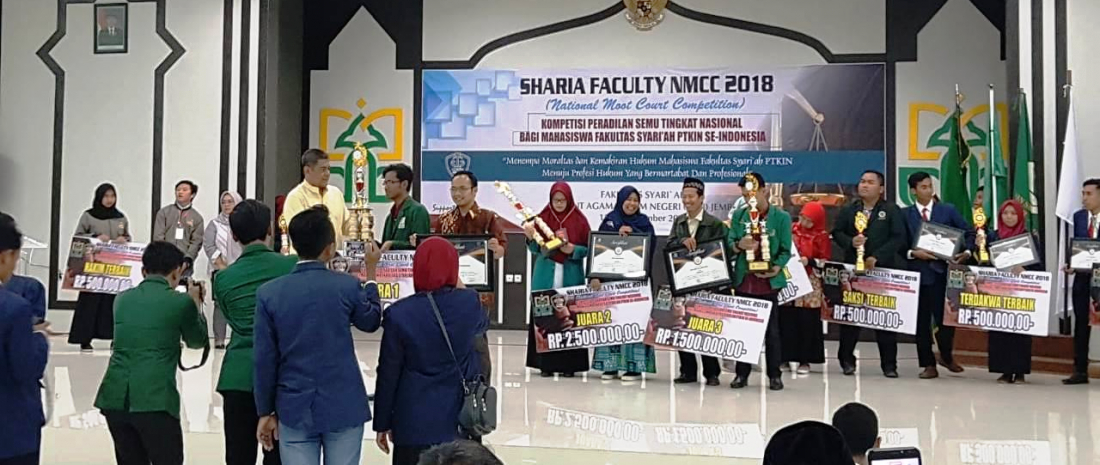 IAIN Jember --- Kompetisi Peradilan Semu Tingkat Nasional (Sharia Faculty National Moot Court Competition) ditutup Rektor Institut Agama Islam Negeri (IAIN) Jember Babun Suharto, Jumat (14/09) di Gedung Kuliah Terpadu (GKT) IAIN Jember. Ajang kompetisi yang dimaksudkan untuk mengasah keilmuan dan keahlian hukum para mahasiswa Fakultas Syariah dari seluruh Perguruan Tinggi Keagamaan Islam Negeri (PTKIN) Indonesia ini digelar sejak tanggal 12 September 2018 di IAIN Jember.