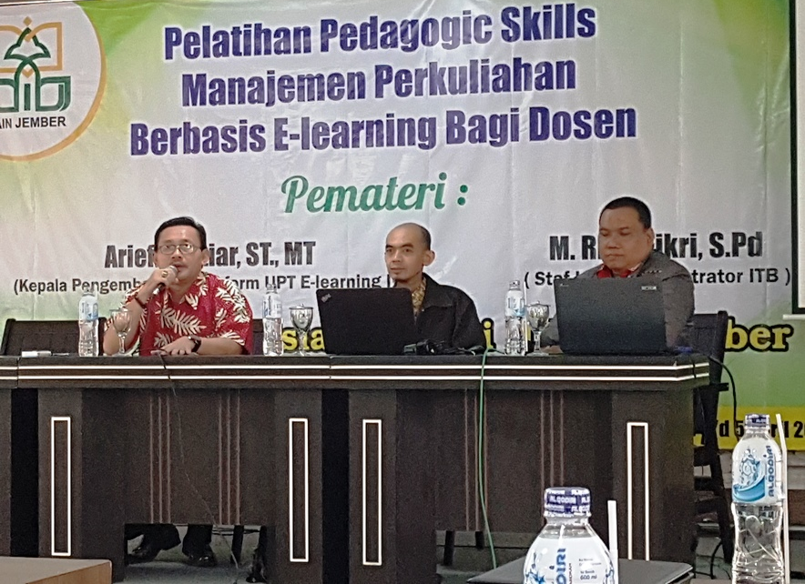 IAIN Jember – Dalam rangka peningkatan mutu pembelajaran, Lembaga Penjaminan Mutu (LPM) Institut Agama Islam Negeri (IAIN) Jember menyelenggarakan Pelatihan Manajemen Perkuliahan berbasis E-Learning. Pelatihan ini diikuti oleh para dosen IAIN Jember dengan tujuan menyiapkan sumber daya manusia perguruan tinggi yang memiliki pengetahuan dan keterampilan dalam konsep penerapan teknologi untuk pembelajaran.