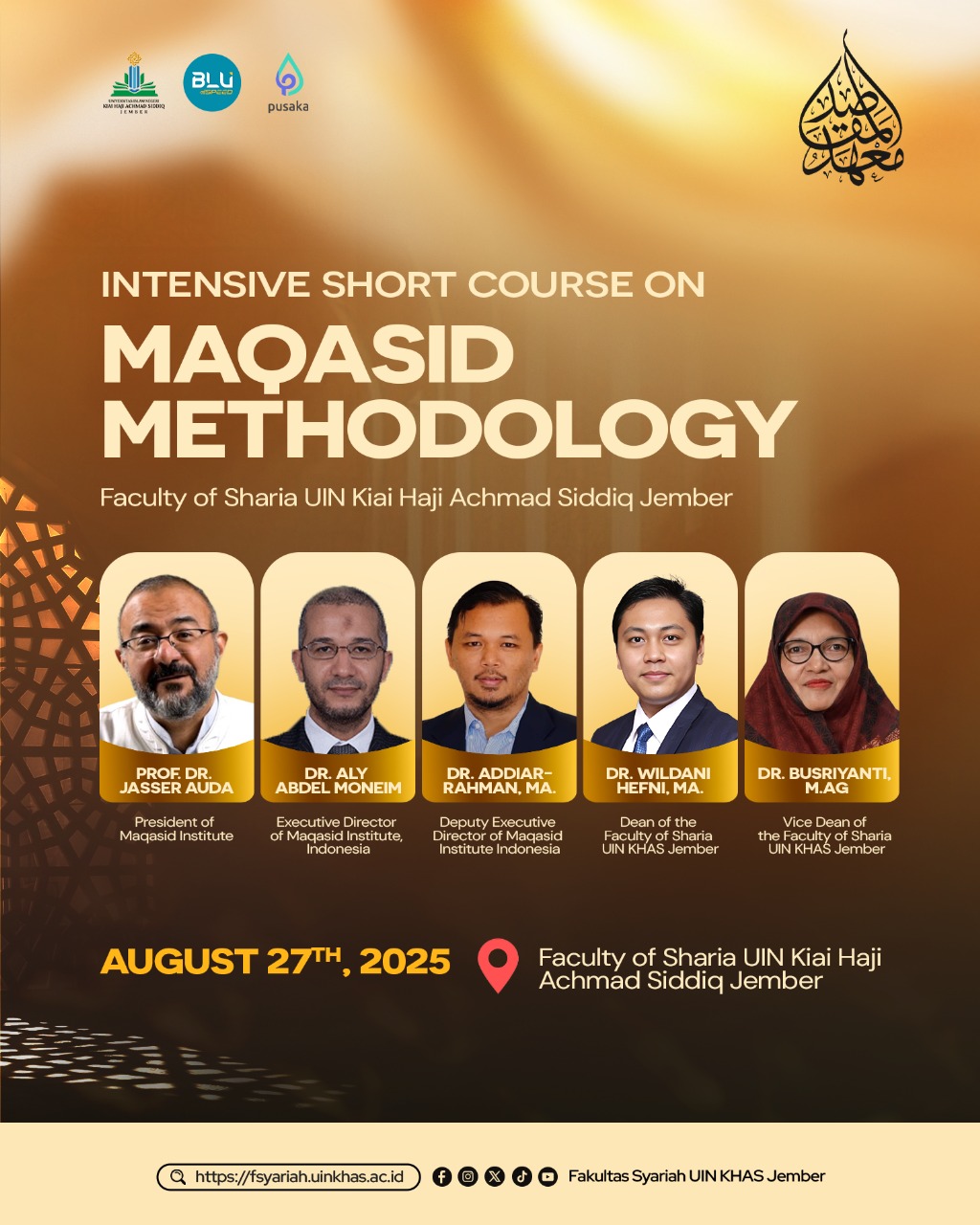 Humas - Fakultas Syariah Universitas Islam Negeri Kiai Haji Achmad Siddiq (UIN KHAS) Jember akan menyelenggarakan kegiatan intensive short course on maqasid methodology. Short course ini juga dirangkaikan dengan pelaksanaan kegiatan International Conference on Sharia and Human Ri...