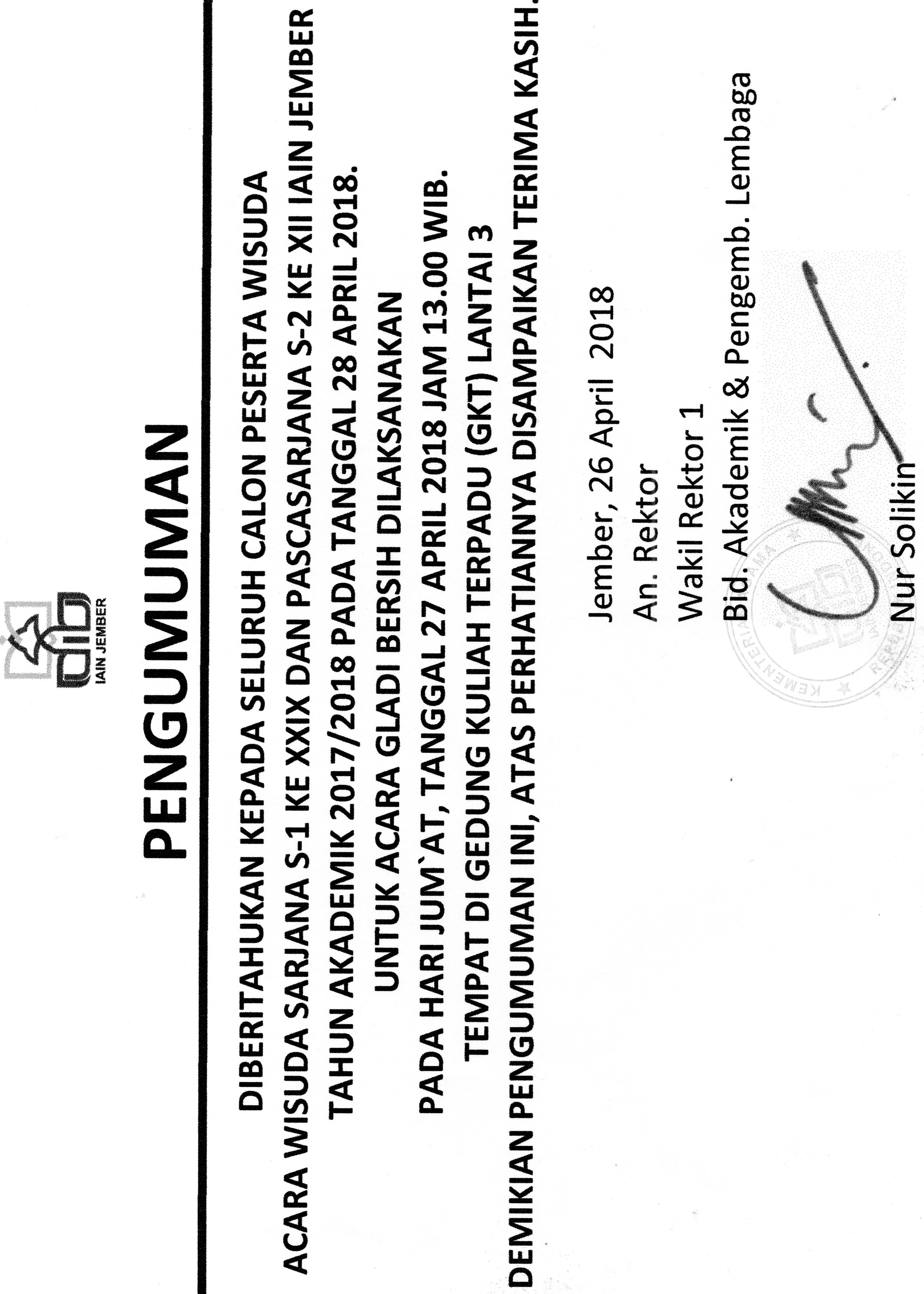 Pengumuman Gladi Bersih Wisuda S1 ke XXIX dan S2 ke XII