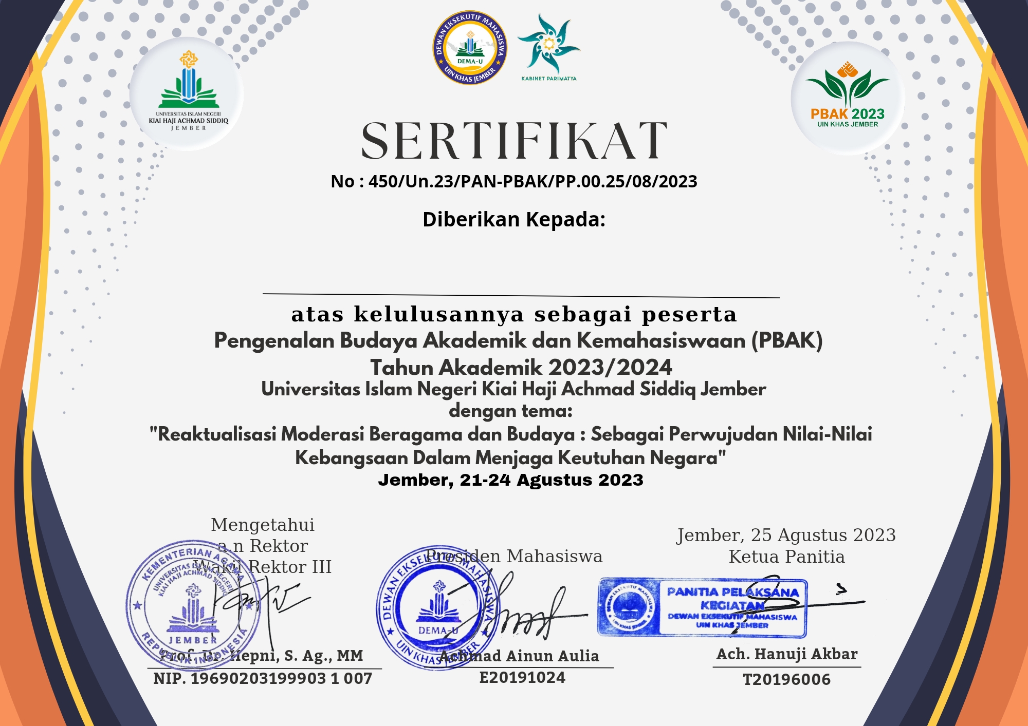 SK Kelulusan Peserta PBAK UIN KHAS Jember 2023