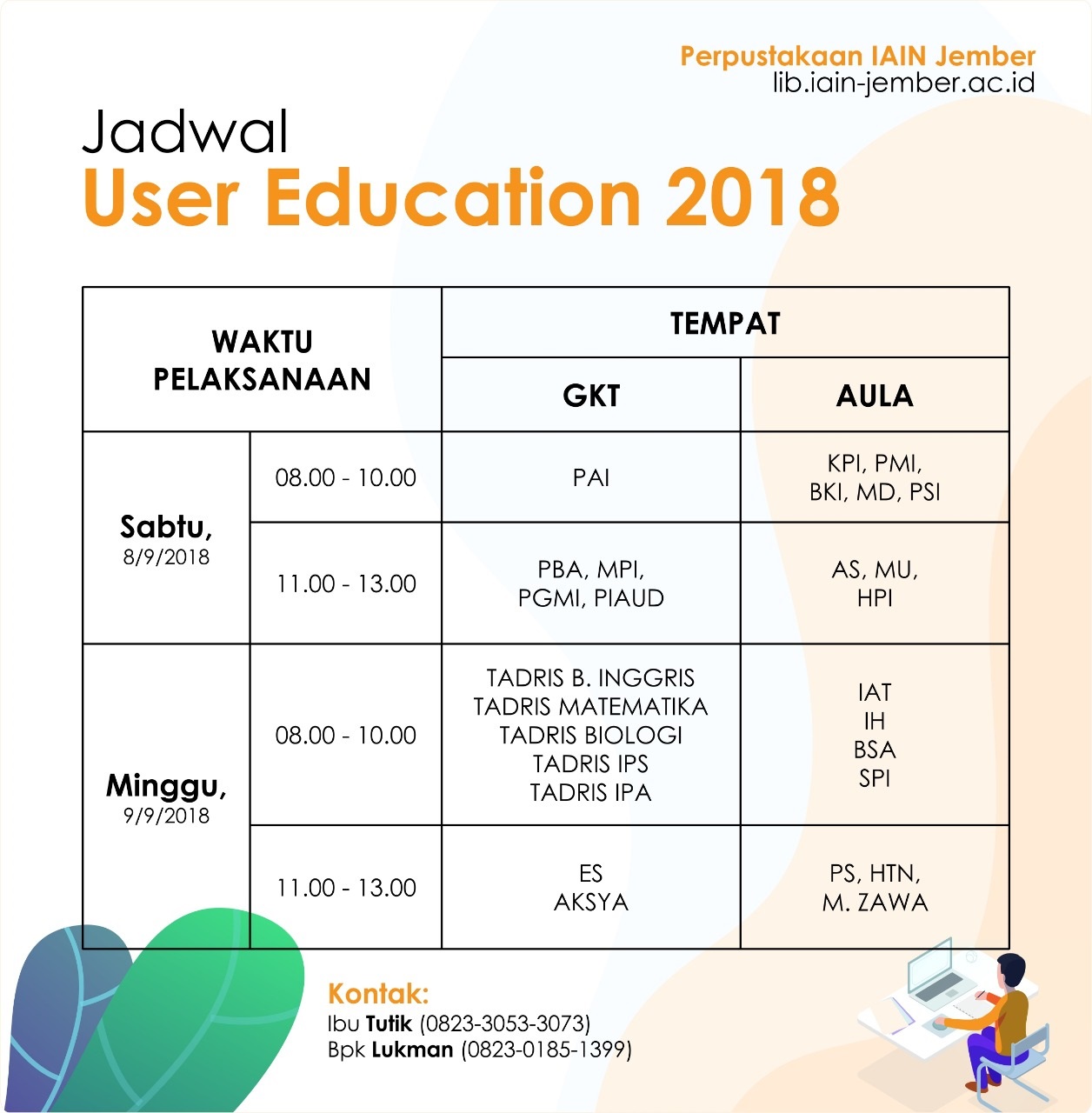 Jadwal pelaksanaan User Education Perpustakaan IAIN Jember tahun 2018